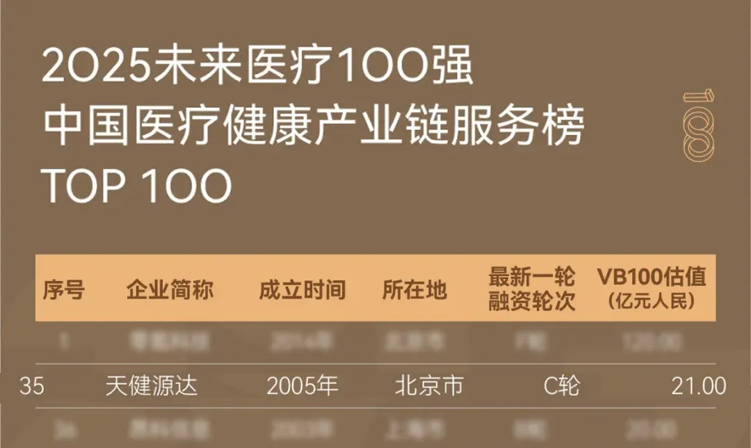 5月9日,2025未來醫(yī)療100強榜單發(fā)布,天健再登榜單,成為“中國醫(yī)療健康產(chǎn)業(yè)鏈服務(wù)榜”TOP 100企業(yè)。本次未來醫(yī)療100強以“THE NOW臨界點”為主題,詮釋臨界點“冰與火”并存的特征,并見證那些敢于立足當(dāng)下、突破界限的先行者。