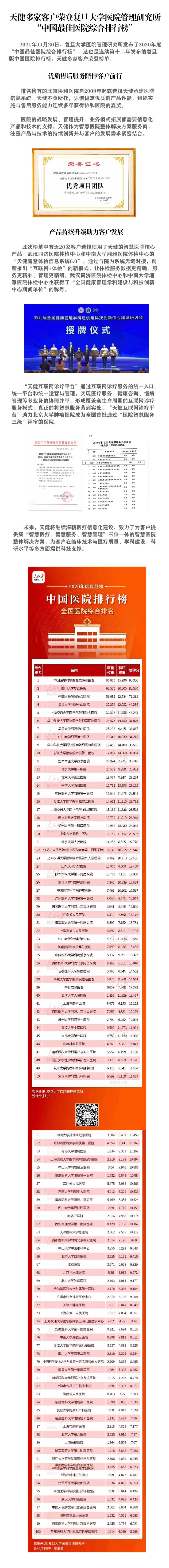 天健多家客戶榮登復(fù)旦大學(xué)醫(yī)院管理研究所“中國(guó)最佳醫(yī)院綜合排行榜”