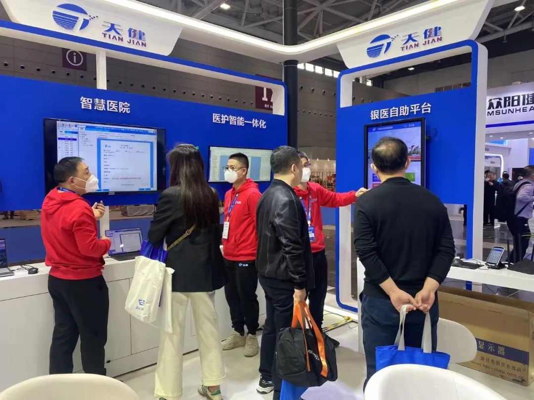 2023年中華醫(yī)院信息網(wǎng)絡(luò)大會(huì)開(kāi)展首日,天健所在的C-T68展位還展示了醫(yī)院智能自助服務(wù)系統(tǒng)、智慧護(hù)理服務(wù)大屏展示系統(tǒng)以及采用原生云技術(shù)、微服務(wù)架構(gòu)的云HIS及云電子病歷。